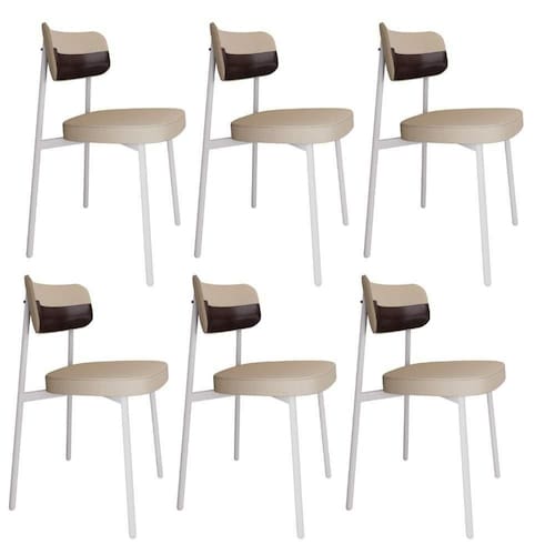Conjunto 6 Cadeiras De Jantar Alloa Corriente Areia- Courino Café - Est. Branca Corriente Areia- Courino Café<-h2>