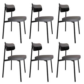Conjunto 6 Cadeiras De Jantar Alloa Corriente Cinza - Courino Preto - Est. Preta Corriente Cinza - Courino Preto<-h2>