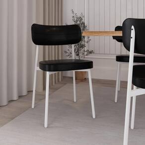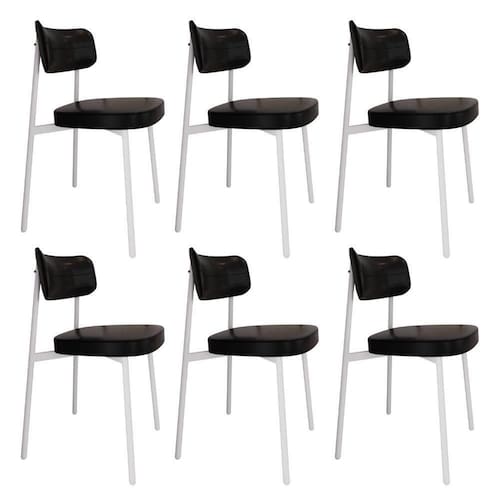 Conjunto 6 Cadeiras De Jantar Alloa Courino Preto - Est. Branca Courino Preto - Branco