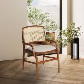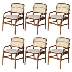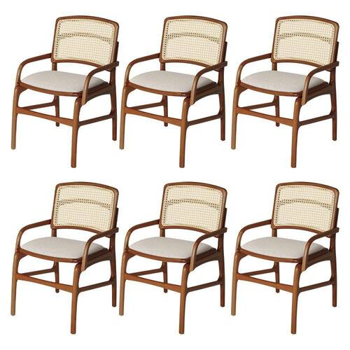 AS IMAGENS SÃO MERAMENTE ILUSTRATIVAS E PODEM SOFRER VARIAÇÕES DE COR E PEQUENOS DETALHES DE ACORDO COM O SEU MONITOR, ILUMINAÇÃO DO AMBIENTE E ATÉ MESMO A SUA PERCEPÇÃO VISUAL.Conjunto 6 Cadeiras de Jantar FlorenÃa em Madeira Jequitibà Terra BraÃo Encosto Palha Linho Bege