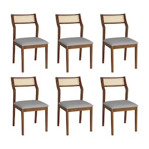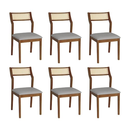 AS IMAGENS SÃO MERAMENTE ILUSTRATIVAS E PODEM SOFRER VARIAÇÕES DE COR E PEQUENOS DETALHES DE ACORDO COM O SEU MONITOR, ILUMINAÇÃO DO AMBIENTE E ATÉ MESMO A SUA PERCEPÇÃO VISUAL.Conjunto 6 Cadeiras de Jantar Lagum Jequitibà Terra Encosto Premium Linho Cinza e Corda NÃutica