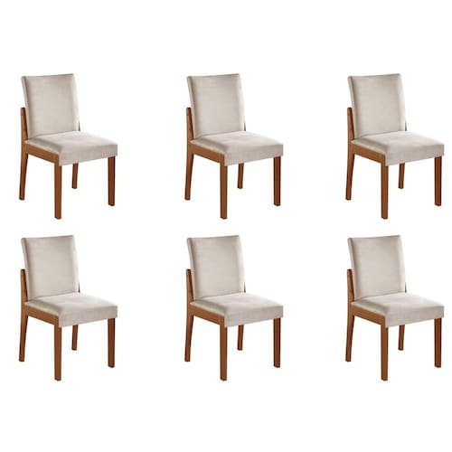 O Kit com 04 cadeiras Mônaco além de lindas são modernas e sofisticadas. Possuem encosto anatômico, proporcionando mais conforto a sua família ao compartilhar de bons momentos , deixando sua sala de jantar ainda mais moderna. Acabamento da Estrutura: Pintura UV Ambiente Principal: Sala de Jantar Complexidade da Montagem: Média: pode ser montado por mais de uma pessoa e/ou necessite de maior conhecimento para montagem Cor: Castanho Cinamomo/Bege Cor do Produto: Castanho Cinamomo/Bege Escala de Brilho: Semi-Fosco Estrutura do Assento: Espuma D-20 e Tecido Suede Estrutura do Encosto: MDF/MDP e Espuma D18 Itens Inclusos: 6 Cadeiras, Manual de Montagem e Kit Ferragens Manual de Montagem e Instalação: https://cdn2.madeiramadeira.com.br/atributo/lj-moveis/1485955-cadeira-mOnaco-yes-casa.pdf Necessita Montagem: Sim Origem do Produto: Nacional Peso: 10,55 kg Possui Rodízio: Não Recomendações de Uso, Manutenção e Limpeza: Para melhor conservação do seu móvel, não utilizar produtos de limpeza. Utilizar somente levemente úmido. Sistema de Montagem: Parafusos, Cavilhas e Cola Tipo de Assento: Fixo Ean: 7909903403204
