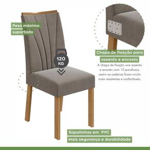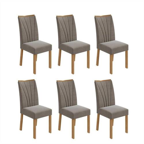 Conjunto 6 Cadeiras Estofadas Apogeu Móveis Lopas Amêndoa Clean/Suede Animale Bege