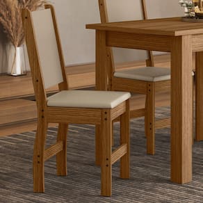 Qualidade Poliman, o melhor em design, conforto e durabilidade. Acabamento: Fosco Acabamento da Estrutura: Pintura Almofada do assento: Fixa Altura do assento até o chão: 47.0000 Altura dos Pés: 45 cm Altura Máxima dos Pés: 45.0000 Ambiente Principal: Cozinha codigo_ean: 7900288112170 Complexidade da Montagem: Baixa: pode ser montado por uma pessoa sozinha Cor: Carvalho/Savana Cor do Produto: Carvalho/Savana Dimensões do assento: C.38xL.40xE.1,5cm Dobrável: Não Enchimento do Assento: Espuma D-10 Escala de Brilho: Fosco Estrutura do Assento: MDP Estrutura do Encosto: MDF Giratória: Não Informações Complementares: Assento com espuma revestida em material sintético de alta resistência, travas, sapatas. Itens Inclusos: Conjunto 6 Cadeiras, Kit de Ferragens e Manual de Montagem. Manual de Montagem e Instalação: https://product-hub-prd.madeiramadeira.com.br/983047/documents/f8b16ec3-822b-43b9-88fc-34a50dfcd245278696449317437760816951.pdf Marca: Poliman Móveis Material Principal: MDF Necessita Montagem: Sim Origem do Produto: Nacional Peso: 38,4 kg Possui Apoio para Braços: Não Possui Apoio Para os Pés: Não Possui Assento/Encosto Estofados: Possui Somente o Assento Estofado Possui Espaldar: Não Possui Rodízio: Não Quantidade de Itens: 6 Recomendações de Uso, Manutenção e Limpeza: Utilizar uma flanela seca ou umedecida. Não usar produtos abrasivos. Revestimento do Assento: Courvin Sistema de Montagem: Parafusos, cantoneiras, pregos, sapatas, junção. Tipo de Assento: Fixo Tipo de Encosto: Fixo