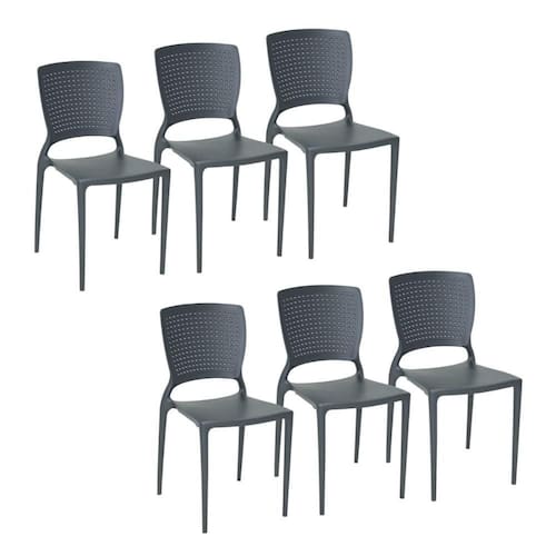 Conjunto 6 Cadeiras Safira em Polipropileno e Fibra de Vidro Grafite Tramontina