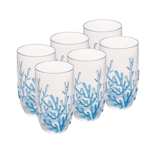 O Conjunto de 6 copos altos de acrílico coral é ideal para aproveitar dias quentes na piscina, praia e barco com sofisticação e segurança.Leve a decoração praiana também para seu ambiente. Fabricado em acrílico moldável de muita resistência e durabilidade.
