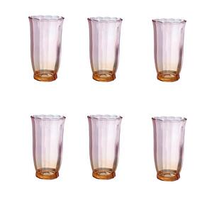 Conjunto 6 Copos Long Drink Peach Dourado com Rosa 350 ml