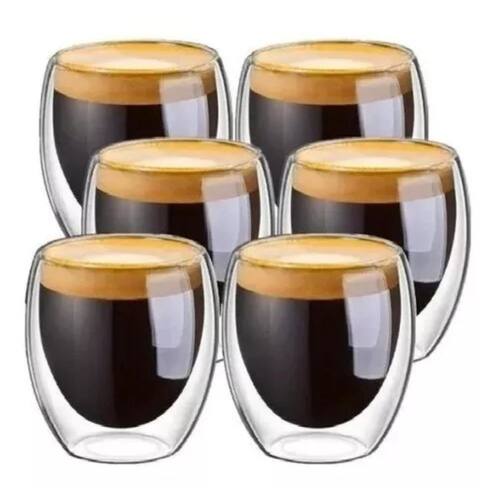 Conjunto 6 copos para café dupla parede de vidro 70 ml Conjunto de copos com 6 peças para café coado e café expresso de vidro resistente, para servir com elegância e sofisticação.