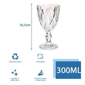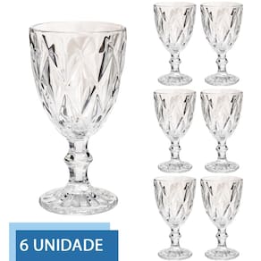 Conjunto 6 Copos Transparente Taça Diamante Agua Vinho 300ml