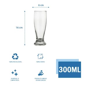 Jogo com 6 Copos De Vidro 300ml Munich Nadir Figueiredo