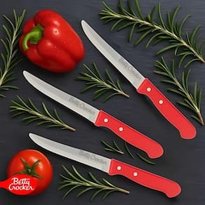 O jogo com 6 facas de mesa em aço inoxidável da Betty Crocker é a combinação perfeita entre resistência, funcionalidade e estilo.