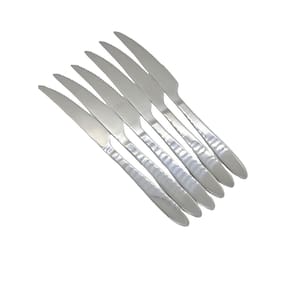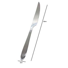 Este conjunto vai deixar suas refeições diárias ainda mais práticas. Ideais para uso diário. O conjunto é produzido em aço inoxidável, são altamente duráveis e proporcionam um manuseio confortável e suave, além de garantir uma mesa encantadora. Fáceis de limpar, podem ir à máquina de lavar louças. O conjunto que faltava para levar muito mais estilo para sua cozinha!RECOMENDAÇÃO DE USO:Antes da primeira utilização, lave bem as peças e seque-as.Tenha cuidado ao manusear produtos cortantes e perfurantes e mantenha-os fora do alcance das crianças.Para maior durabilidade dos produtos recomenda-se secar bem antes de guardar, mesmo após lavagem em máquina.Dimensão:22 cm x 2 cm x 1 cmItens Inclusos- 6 Facas Marca: WARI