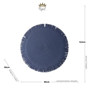 O Conjunto 6 Lugares Americanos Azul Escuro Franjas Wolff é a escolha perfeita para adicionar um toque de cor e praticidade à sua mesa. Com um tom profundo e design versátil, este lugar americano proporciona uma base encantadora para suas refeições. Com 38cm de diâmetro, proporciona uma base ampla para pratos e talheres, garantindo uma apresentação impecável durante suas refeições.