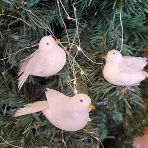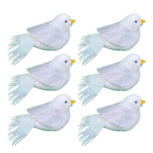 Kit 6 Pássaros Decorativo Natal Glitter Branco 8cm