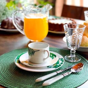 Conjunto 6 Peças Jogo Americano Redondo 38cm Sousplat Glamour Verde O Conjunto 6 Peças Jogo Americano Redondo 38cm Sousplat Glamour Verde é perfeito para servir os seus convidados com muito estilo Fabricado em Polipropileno / Poliéster, ele é altamente durável e possui traços elegantes e sofisticados. Além disso, sua qualidade artesanal garante um toque especial à mesa posta. Não deixe de conferir O Conjunto 6 Peças Jogo Americano Redondo 38cm Sousplat Glamour Verde é ideal para você que busca elegância e sofisticação em seus ambientes. Queremos que você tenha um produto de alta qualidade e durabilidade em suas mãos. A aplicação da técnica de Polipropileno/Poliéster no jogo americano dá um toque especial ao objeto, tornando-o único. Adquiria já o seu e surpreenda seus convidados Características: - Conjunto Americano fabricado em Polipropileno/Poliéster, sendo composto por 6 peças. - Tamanho de 38cm de diâmetro, ideal para mesa posta. - Peças produzidas artesanalmente com material resistente e durável. - O design do conjunto é elegante e sofisticado, podendo ser Utilizado em qualquer ocasião. Especificações: - Marca: Mimo - Tamanho: 38cm de diâmetro - Material: Polipropileno / Poliéster - Cor: Verde - Quantidade: 6 peças