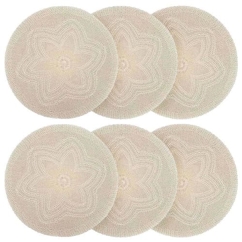 Conjunto 6 Peças Jogo Americano Redondo Sousplat Crochê Florido Branco O Conjunto 6 Peças Jogo Americano Redondo Sousplat Crochê Florido Branco é perfeito para servir os seus convidados com muito estilo Fabricado em crochê, ele é altamente durável e possui traços elegantes e sofisticados. Além disso, sua qualidade artesanal garante um toque especial à mesa posta. Não deixe de conferir O Conjunto 6 Peças Jogo Americano Redondo Sousplat Crochê Florido Branco é ideal para você que busca elegância e sofisticação em seus ambientes. Queremos que você tenha um produto de alta qualidade e durabilidade em suas mãos. A aplicação da técnica de crochê no jogo americano dá um toque especial ao objeto, tornando-o único. Adquiria já o seu e surpreenda seus convidados Características: - Conjunto Americano fabricado em crochê, sendo composto por 6 peças.- Tamanho de 38cm de diâmetro, ideal para mesa posta.- Peças produzidas artesanalmente com material resistente e durável.- O design do conjunto é elegante e sofisticado, podendo ser usado em qualquer ocasião. Especificações: - Marca: Mimo- Tamanho: 38cm de diâmetro- Material: crochê- Cor: Branco- Quantidade: 6 peças