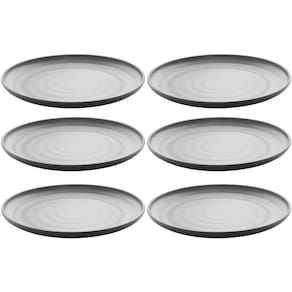 Garantia: 90 dias / Peso total: 1,992kg / Cor predominante: preto / Ref: 7798138813366; Dimensões de cada pratinho: 18cm (D) x 2cm (A); Material: melamina; Conteúdo: 6 pratos de sobremesa.