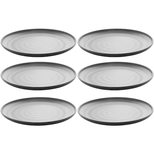 Conjunto 6 Pratos de Sobremesa em Melamina Lyor Tóquio Oriental com Relevo Preto Fosco.