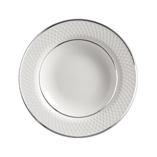 Os Pratos Fundo Relevo Silver Alleanza são produzidos com cerâmica feldspática branca de alta resistência, com processo de decoração digital sobre a base branca. Isso garante a qualidade e durabilidade do produto, além de proporcionar um acabamento impecável.