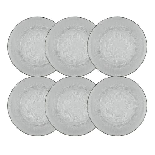 Conjunto 6 Pratos Raso Vidro Transparente Forjado 22,4cm