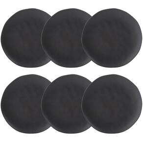 Conjunto 6 Pratos Rasos Cerâmica Orgânico Preto Matte 26,5cm Porto Brasil Mesa Posta Jantar Almoço