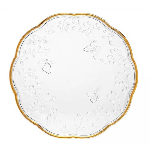 1 Conjunto 6 Pratos Sobremesa New Butterfly Fio de Ouro Cristal 20cm 220864 - Lyor