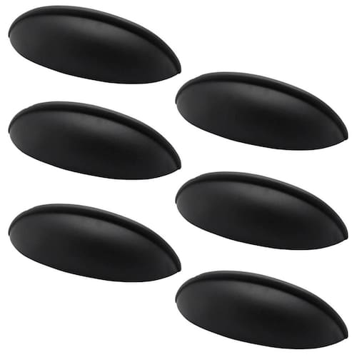 Conjunto 6 Puxadores 332 Aniela Concha Preto Fosco para Móveis Armários e Gavetas.