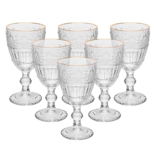Conjunto 6 Taças de Cristal com Fio de Ouro 320ml Mauve Wolff