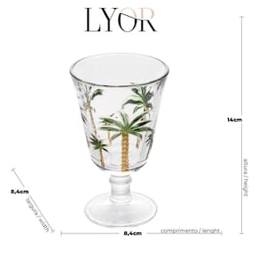 O Conjunto de 6 Taças de Cristal Palm Hand Painting da Lyor é muito mais do que simples taças, é uma declaração de elegância e sofisticação em sua mesa. Cada peça é cuidadosamente pintada à mão, garantindo um toque único e exclusivo a cada uma delas. Com capacidade para 240ml, estas taças são perfeitas para apreciar seus vinhos e drinks favoritos com estilo e classe.