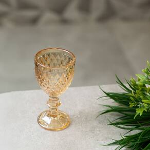 A taça de vidro âmbar metalizado combina perfeitamente com uma variedade de ambientes e ocasiões, tornando-se a escolha distinta para expressar seu estilo único.