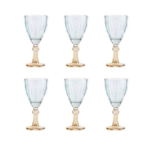 Cód: AG0053Conjunto 6 Taças de Vidro com Detalhes na Haste Azul e ÂmbarMaterial: VidroCor: Azul e ÂmbarCapacidade: 250mlDimensões: 18,5x9cm (AxL)