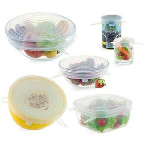 Conjunto 6 Tampas Silicone Flexível Potes Universal Cor: Transparente Kit 6 Tampas Silicone Panela Pote Universal Flexível Sem BPAReutilizável, em silicone, serve em panelas, potes, frutas entre outros.Tampa Elástica, ótima para tampar frutas e evitar cheiros, tampar potes e vedar.O kit possui 6 tampas de tamanhos diferentes, produzidas em silicone altamente elástico.Basta esticar a tampa ao redor da sua vasilha e pronto, você vai proteger o seu alimentoIndependentemente do tamanho do compartimento.Perfeito para armazenando sobras, tampar frutas e legumes, tampar potes e vedar o cheiro.Cabe tigelas e recipientes redondosAs tampas de silicone super-extensíveis da embalagem cabem todo o tamanho de 7 cm a 26 cmDe diâmetro e esticarão para caber a maioria de formas. Sistema Hermético: conserva o sabor dos alimentos por mais tempoDiâmetros: 6,2 cm / 9 cm / 11cm / 13,5 cm / 16 cm / 20 cm Pode ser usado em:- Máquina lava-louças- Geladeira / Congelador. Marca: Ktch