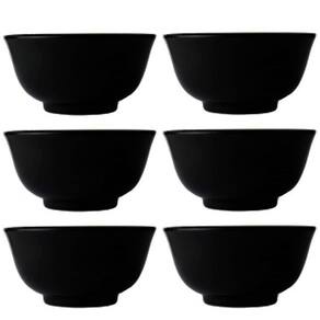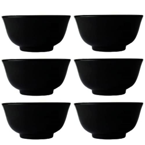 Garantia: 90 dias / Peso de cada: 0,244kg / Cor predominante: preto / Ref: 7798139994743; Dimensões de cada: 11cm (D) x 5,5cm (A); Capacidade de cada: 240ml; Acabamento: brilhante; Material: porcelana; Conteúdo: 6 tigelas pequenas de porcelana; Cuidados: não lavar com materiais abrasivos.