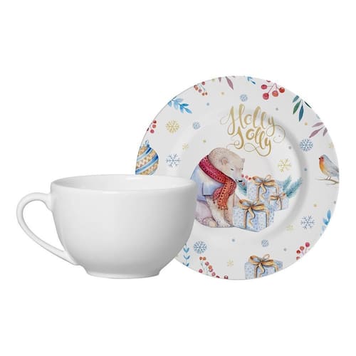 O é o protagonista dessa decoração que traz cores harmônicas e delicadas para a sua mesa de natal. Material: Cerâmica Conteúdo da Embalagem: 06 Xícaras de Chá 200ml 06 Pires 15,7x2cm Especificações Técnica: Medidas: 15,7x15,7x6,5cm Comprimento X Largura X Altura Capacidade: 200ml Peso: 530gr Marca: Alleanza Origem: Nacional Cuidados de Limpeza e Uso: Lavar com detergente neutro, esponja macia e secar imediatamente Não usar esponja de aço Suporta máquina de lava-louças e micro-ondas Para realçar o brilho usar uma flanela