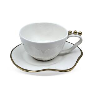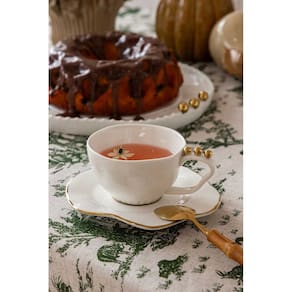 Transforme seus momentos à mesa com este conjunto de xícaras de chá em cerâmica branco e dourado, unindo beleza, funcionalidade e um toque de requinte ao seu dia a dia.