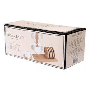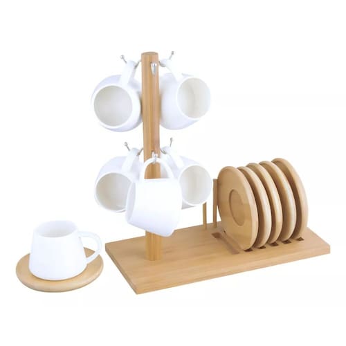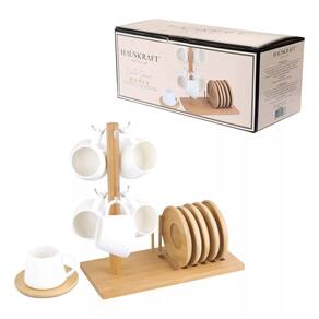 Conjunto 6 Xicaras Para Café em Cerâmica com Suporte e Pires em Bambu Oasis Hauskraft