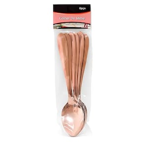 Conjunto 6pçs Colheres De Mesa Inox Rose Gold Luxo Rústico -