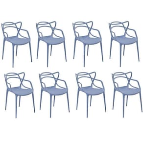 Conjunto com 8 cadeiras injetadas em peça única, com quatro pernas de apoio e sapatas incolores. Encosto vasado com assento inteiro abaulado. Empilhável. Possui certificação do Inmetro. Altura do Conjunto: 82.5 cm Ambiente: Sala de Jantar Ambiente Principal: Sala de Jantar Cor: Azul Caribe Informação Complementar: 2x Conjunto 4 Cadeiras Allegra Azul Caribe Largura: 53 cm Altura: 82,5 cm Peso: 4,25 kg Profundidade: 57,5 cm Necessita Montagem: Não