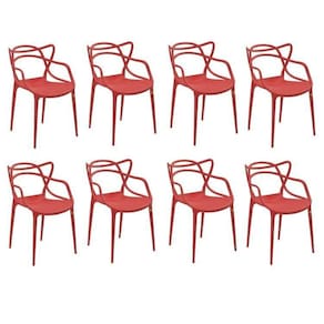 Conjunto com 8 cadeiras injetadas em peça única, com quatro pernas de apoio e sapatas incolores. Encosto vasado com assento inteiro abaulado. Empilhável. Possui certificação do Inmetro. Altura do Conjunto: 82.5 cm Ambiente: Sala de Jantar Ambiente Principal: Sala de Jantar codigo_ean: 7909903347621 Cor: Vermelho Cor do Produto: Vermelho Informação Complementar: 2x Conjunto 4 Cadeiras Allegra Vermelho Largura: 53 cm Altura: 82,5 cm Peso: 4,25 kg Profundidade: 57,5 cm Necessita Montagem: Não
