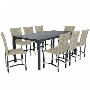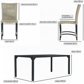 Conjunto 8 Cadeiras Cannes Corda Náutica e Mesa Retangular Ripada 2,00m em Alumínio para Edícula, Jardim, Área, Varanda, Cozinha - Pintura Preta - Bege
