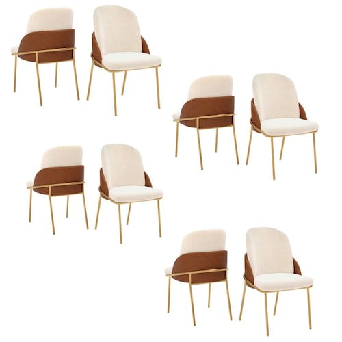 O Conjunto 8 Cadeiras Estofadas Vitta DJ M?veis combina sofistica??o e conforto com um design elegante e moderno. Sua base met?lica cil?ndrica garante resist?ncia e durabilidade, enquanto sapatas deslizadoras protegem o piso e proporcionam praticidade. O encosto anat?mico, feito de l?minas de madeira moldadas, e o assento s?o estofados com espuma de alta densidade, revestidos em tecido aconchegante. O detalhe em tecido sint?tico na parte traseira adiciona um toque sofisticado. Com acabamentos impec?veis, a Vitta ? uma pe?a que une eleg?ncia e funcionalidade, transformando qualquer ambiente.