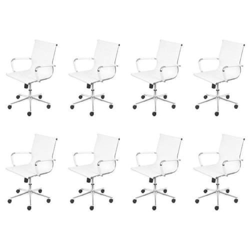 Altura do Conjunto: 92 cm Ambiente: null Ambiente Principal: Escritório Cor: Branco Informação Complementar: 2x Conjunto 4 Cadeiras de Escritório com Rodízios Esteirinha Baixa Sintético BrancoLargura: 61Altura: 92Peso: 12.19Profundidade: 46.5Necessita Montagem: Sim Possui Rodízio: Sim Suporta Até (kg): 120 Tamanho: