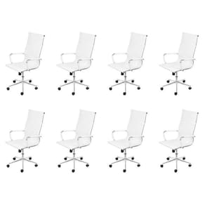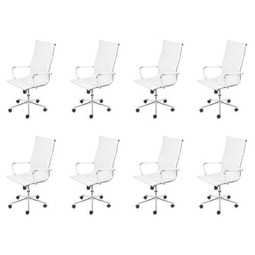 Altura do Conjunto: 106 cm Ambiente: null Ambiente Principal: Escritório Cor: Branco Informação Complementar: 2x Conjunto 4 Cadeiras de Escritórios com Rodízios Esteirinha Alta Sintético BrancoLargura: 61Altura: 106Peso: 12.19Profundidade: 46.5Necessita Montagem: Sim Possui Rodízio: Sim Suporta Até (kg): 120 Tamanho: