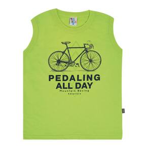 O conjunto ideal para os meninos se aventurarem de bike no parquinho! A regata confeccionada em tecido meia malha na cor abacate com estampa frontal de uma bike e escrita "Pedaling All Day/Moutain Racing"* e a bermuda na cor mescla cinza é confeccionada em moletom jet. O conjunto é prático e ideal para o dia da dia da garotada! *Tradução: "Aventura de corrida de montanha/pedalando o dia todo".