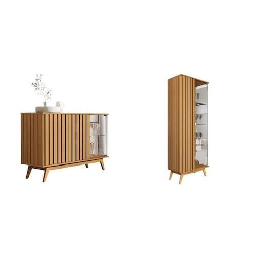 Conjunto de uma Cristaleira com Lateral e Porta Ripada Jb Açaí, Vidro Temp 4mm e Pés e Travessas em Madeira Maciça Marrom um Buffet Ripado Açaí de 3 Portas, Vidro Temp 4mm e Pés em Madeira Maciça Marrom Possui Rodízio: Não Altura do Conjunto: 180 cm Ambiente Principal: Sala de Jantar codigo_ean: 7909903920183 Cor: Marrom Cor do Produto: Marrom Informação Complementar: 1x Buffet Ripado Açaí de 3 Portas e Pés em Madeira Maciça Marrom Largura: 136 Altura: 83 Peso: 41 Profundidade: 42 Necessita Montagem: Sim