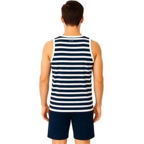 Desperte o espírito aventureiro com o Conjunto Fantasia Marinheiro, perfeito para festas temáticas, eventos ou momentos de descontração. A regata listrada em azul e branco traz a clássica gola marinheiro estampada com detalhe em vermelho e âncora, reforçando a autenticidade do visual náutico. O short azul marinho complementa o conjunto com conforto e estilo.