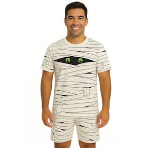 Conjunto Adulto Fantasia Temática Múmia Com Camiseta e Short.