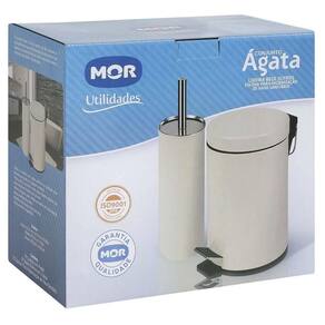 O Conjunto Ágata Lixeira 3 litros e Escova Higiênica tem design discreto e é um item indispensável para qualquer banheiro, conferindo um toque de elegância ao cômodo.