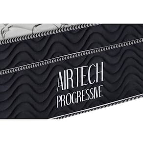 Colchão Airtech Progressive possui em sua estrura o avançado molejo Nanolastic que tem a menor molécula de carbono do mercado, proporcionando um perfeito suporte para a coluna e conforto para qualquer biótipo, possui Ortopillow e em sua camada de conforto espuma D26 Pró Aditivada de Alta Performance, bordado em matelassê e placa EPS. Seu tampo é em malha de alta qualidade e lateral em Camurça, apresentando um toque refinado ao colchão. Possui a tecnologia No Turn, que dispensa a necessidade de virar o colchão. O Airtech Progressive recebe tratamento antialérgico e antiácaro, ajudando a reduzir os problemas respiratórios. Um excelente colchão para suas noites.