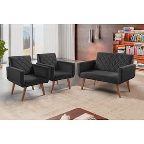Conjunto Anabelle 2 Poltronas De 1 Lugar 1 Poltrona 2 Lugares Braço Unidecor Preto Produzida artesanalmente e com estrutura em Madeira proveniente de Reflorestamento, esta poltrona possui durabilidade, resistência e um excelente acabamento. Conjunto Poltrona Decorativa Anabelle Tenha a tranquilidade de comprar com quem esta disposto a oferecer o melhor atendimento. Caso tenha algum problema com a venda, conte com nossa equipe de pós-venda para solucioná-los. DETALHES DO PRODUTO: NAMORADEIRA ANABELLE 2 LUGARES (1 UNIDADE) Altura - 85cm Largura 1,15 cm Profundidade - 70 cm Peso: 15 Kg Suporta até (kg): 120 kg